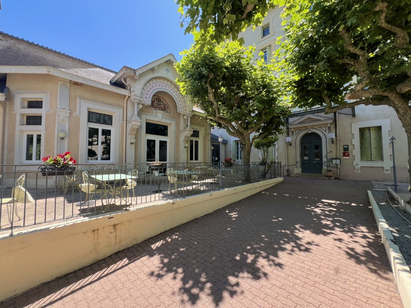 L’hôtel est niché dans une bâtisse Belle époque dans une rue calme et attenante au centre de cure de la Chaîne Thermale du Soleil. L’établissement offre un îlot de verdure entre une terrasse aux platanes centenaires et le parc thermal de l’Usclade. Les commerces ainsi que le cinéma, le casino et le théâtre se situent à 200 mètres.
